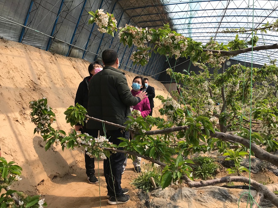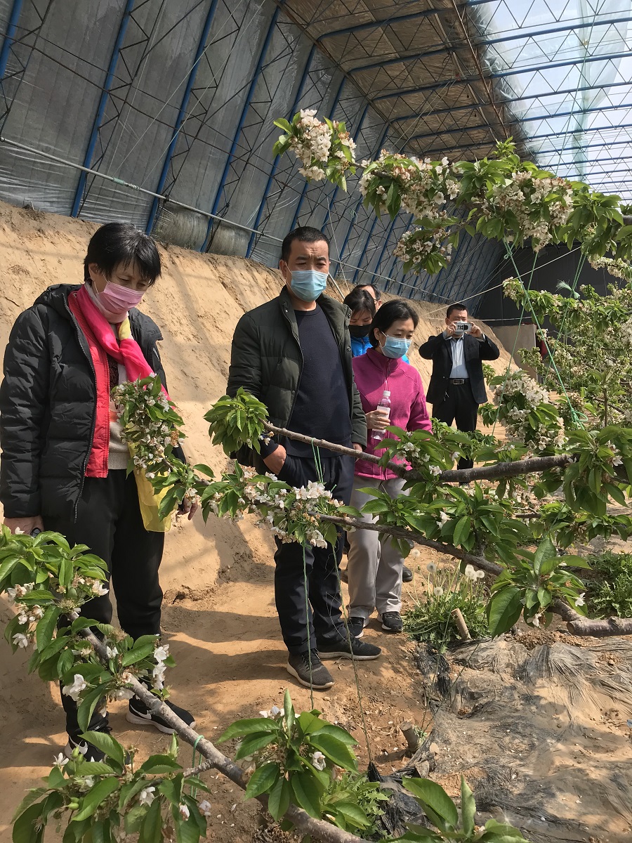 在基地,科研團(tuán)隊(duì)實(shí)地查看了杏花芽萌發(fā)情況及接穗存儲條件,對園區(qū)杏花期管理及后續(xù)的嫁接工作提出了建議。會同巨鹿縣林業(yè)局工作人員,考察了園區(qū)櫻桃、桃等溫室大棚,并對櫻桃出現(xiàn)的黃葉狀況進(jìn)行了解析,提出具體的技術(shù)建議。