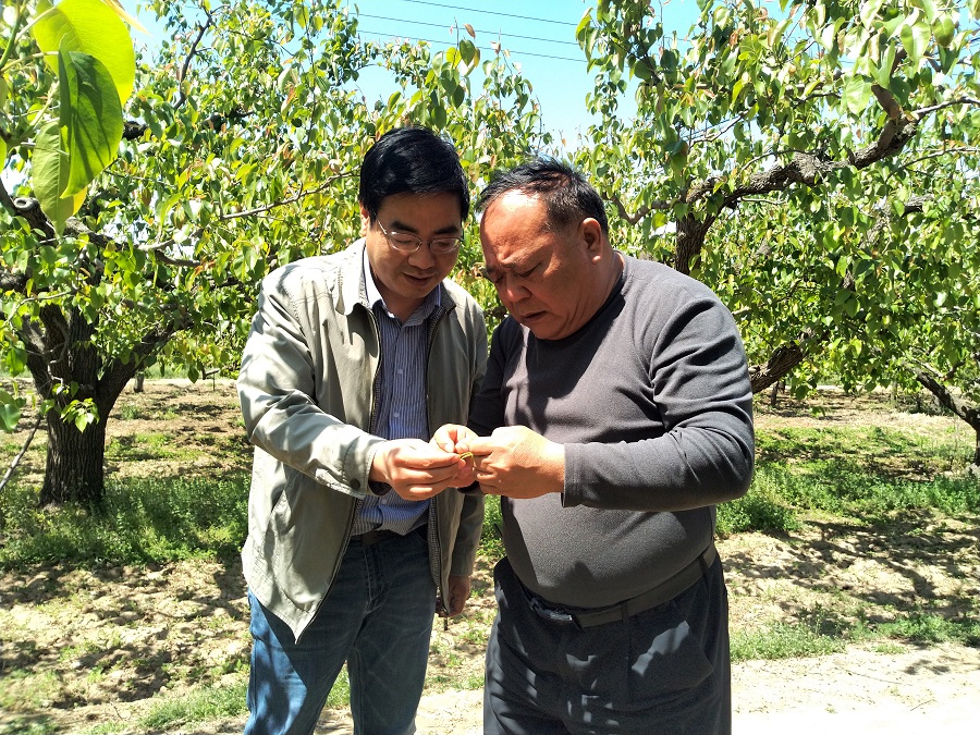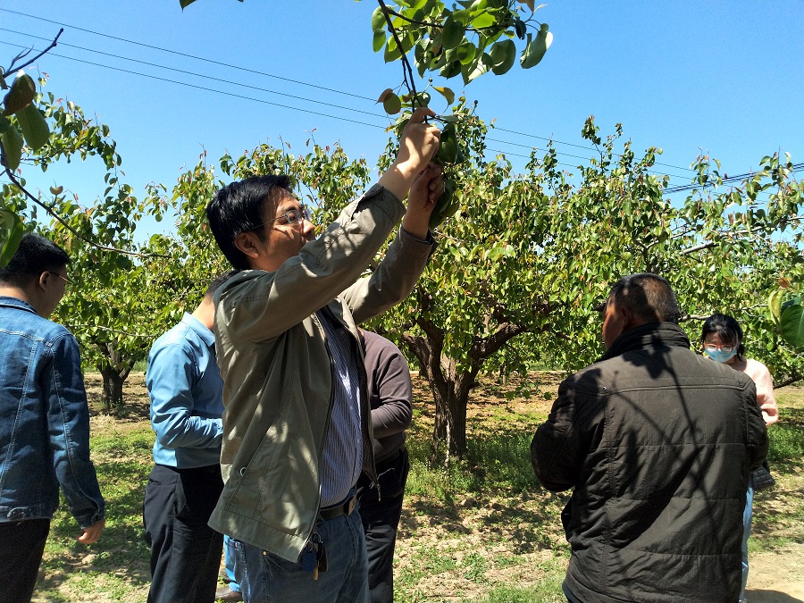 經(jīng)調(diào)研,受凍幼果發(fā)黑,嚴(yán)重影響果實(shí)發(fā)育,甚至死亡,初步判斷趙縣地區(qū)梨樹受災(zāi)面積100%,其中雪花梨、紅香酥、玉露香、黃冠等品種凍害較重,鴨梨相對較輕。李勇站長針對凍害程度指導(dǎo)種植戶采取補(bǔ)救措施,力爭把損失降到最低。