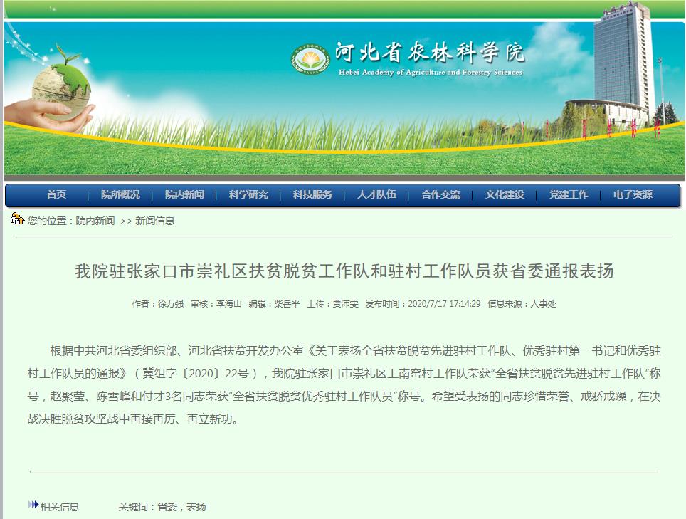 我所駐村工作隊員陳雪峰獲省委通報表揚