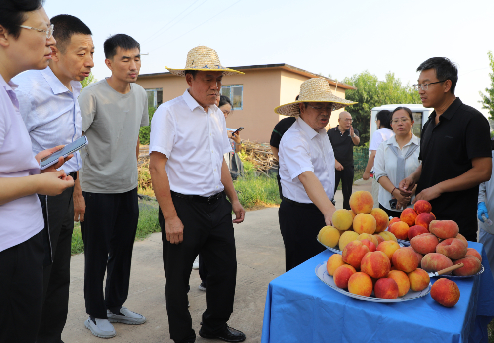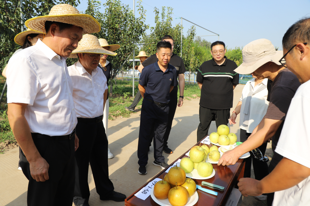 高一雷一行參觀了我所科技文化展廳,全面了解研究所發展歷史、創新成果、科技服務、黨建文化等工作。參觀了果樹根系觀測系統科研平臺,實地考察了棗、梨、桃、蘋果育種、葡萄示范園區,著重調研了種質資源保護與利用現狀、自主培育品種成果、產業難題等。高一雷充分肯定了石果所育種工作,對自育品種品質給予了高度評價。
